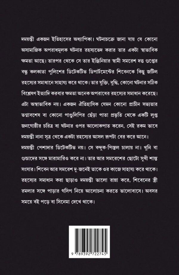 দময়ন্তী একজন ইতিহাসের অধ্যাপিকা। ঘটনাচক্রে জানা যায় যে কোনো অসামাজিক অপরাধমূলক ঘটনার রহস্যভেদ করার তার একটা স্বাভাবিক ক্ষমতা আছে। তারপর থেকে সে তার ইঞ্জিনিয়ার স্বামী সমরেশ দত্ত গুপ্তের বন্ধু কলকাতা পুলিশের ডিটেকটিভ ডিপার্টমেন্টের শিবেনকে কিছু জটিল রহস্যের সমাধানে সাহায্য করে থাকে। তার যুক্তি, বুদ্ধি, কোনো ঘটনার সঠিক বিশ্লেষণ ইত্যাদি করবার ক্ষমতা অনেক অপরাধের রহস্যের সমাধান করেছে। এটা অস্বাভাবিক নয়। একজন এতিহাসিক যেমন কোনো প্রাচীন সভ্যতার ভগ্নাবশেষ বা কোনো পাগুলিপির ছেঁড়া পাতা প্রভৃতি থেকে একটি লুপ্ত জনগোষ্ঠীর চরিত্র বা ঘটনার ওপর আলোকপাত করেন, সেই রকম ভাবে দময়ন্তী নানা সূত্র থেকে একটা রহস্যের আসল রূপটা বের করে আনে।